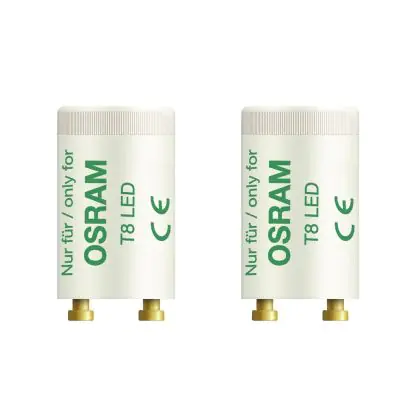 Die Osram SubstiTUBE T8 LED-Starter sind für LED-Röhren geeignet, mit denen Sie Ihre ausgedienten Leuchtstoffröhren ersetzen möchten. Einen Starter benötigen Sie, wenn Ihre Leuchtstoffröhre mit einem konventionellen Vorschaltgerät (kurz: KVG oder EM) betrieben wird. Der bisherige Starter wird durch den LED-Starter ausgetauscht und schon kann die LED-Alternative in Betrieb genommen werden. Diese Osram-Starter sind geeignet für die Verwendung mit T8-LED-Röhren der Reihe SubstiTUBE. Pro Verkaufseinheit sind zwei Starter enthalten.