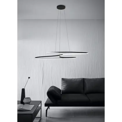 Die Eglo Pendelleuchte Gianella Stahl Schwarz 38W 4400lm - 830 Warmweiß | Dimmbar sorgt für eine angenehme Ausleuchtung und punktet durch modernes Design. Diese Leuchte ist speziell zur Montage an der Decke vorgesehen.
