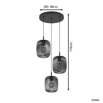 Die Eglo Pendelleuchte Romazzina Stahl Schwarz | Geeignet für 3x E27 sorgt für eine angenehme Ausleuchtung und punktet durch modernes Design. Diese Leuchte ist speziell zur Montage an der Decke vorgesehen.
