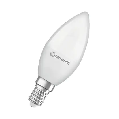 Die Ledvance Classic LED E14 Kerze Matt 4.9W 470lm - 827 Extra Warmweiß | Ersatz Für 40W ist eine effiziente E14 LED-Lampe und der perfekte Ersatz für Ihre konventionellen 40W Lampen mit E14-Sockel. Zudem strahlt sie Licht in der Farbtemperatur 2700K - Extra Warmweiß aus und punktet durch eine lange Lebensdauer.