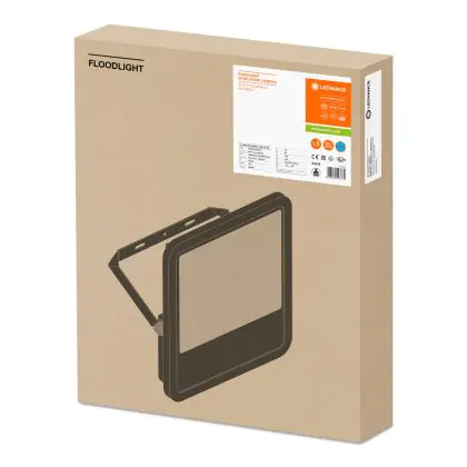 Der Ledvance LED-Scheinwerfer 200W 6500K 25000lm IP65 | Schwarz - Symmetrisch ist in stilvollem Schwarz gehalten. Dank der hohen Robustheit kann die Leuchte problemlos in Außenbereichen eingesetzt werden.