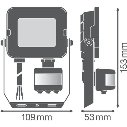 Beschreibung Ledvance LED-Scheinwerfer Kompakt Schwarz 10W 1000lm 100D - 840 Kaltweiß | IP65 - Symmetrisch - Bewegungs- und Lichtsensor