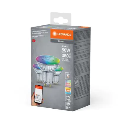 Beschreibung Ledvance Smart+ Wifi GU10 Spot 5W 350lm 45D - 827-865 Abstimmbares Weiß | RGBW - Dimmbar - Ersatz für 50W