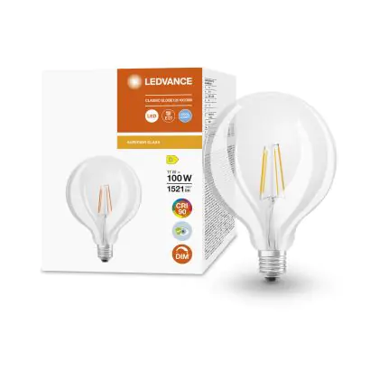 Die Ledvance Superior Classic LED E27 Globe Fadenlampe Klar 11W 1521lm - 940 Kaltweiß | Höchste Farbwiedergabe ist eine effiziente E27 LED-Lampe mit Retrodesign und der perfekte Ersatz für Ihre konventionellen 100W Lampen mit E27. Zudem strahlt sie Licht in der Farbtemperatur 4000K - Kaltweiß aus und punktet durch eine lange Lebensdauer.