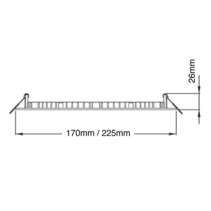 Die Deckenleuchte verfügt über einen gesamten Durchmesser von 225 mm. Die Aussparung für das bereits integrierte LED-Leuchtmittel beträgt im Durchmesser 210 mm. Die Höhe der Leuchte und damit gleichzeitig die Installationstiefe beläuft sich auf gerade einmal 26 mm.