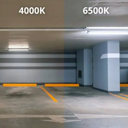 Die LED-Feuchtraumleuchte kommt mit der Farbtemperatur 4000K - Kaltweiß daher. Als Faustregel gilt: Je niedriger der Kelvinwert, desto gemütlicher wirkt das Licht.