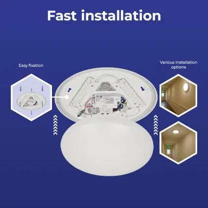 Die Noxion LED-Wand- und Deckenleuchte Corido V2 Weiß 12/16/20W 2000lm 830-840-865 CCT | IP44 - Not 3h ist eine Feuchtraumleuchte. Sie strahlt Licht in der Farbtemperatur aus und punktet durch eine lange Lebensdauer. Diese Leuchte ist speziell zur Verwendung in Feuchträumen (Keller, Waschräume, etc.) vorgesehen.