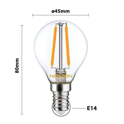 Die Noxion Lucent LED E14 Kugel Fadenlampe Klar 2.5W 250lm - 827 Extra Warmweiß | Ersatz für 25W ist eine effiziente E14 LED-Lampe mit Retrodesign und der perfekte Ersatz für Ihre konventionellen 25W Lampen mit E14. Zudem strahlt sie Licht in der Farbtemperatur 2700K - Extra Warmweiß aus und punktet durch eine lange Lebensdauer.
