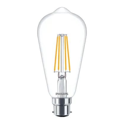 Die Philips Classic LEDbulb B22 ST64 8W 827 Klar | Dimmbar - Extra Warmweiß ist eine besonders effiziente B22 LED-Lampe. Die Filamentlampe ist nicht nur optisch ein schönes Highlight, sondern überzeugt auch mit hochwertiger LED-Technik und einem extrem geringen Energieverbrauch. Weiterhin ist die LED-Lampe dimmbar.