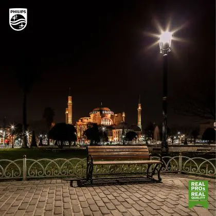 Die Philips TrueForce LED HPL E40 42W 830 Clear strahlt als Außenbeleuchtung mit 360° Abstrahlwinkel ein warmweißes Licht aus. Die Lichtfarbe hat 3.000 Kelvin und damit einen erhöhten Rotanteil. Das schafft eine angenehme und einladende Atmosphäre.
