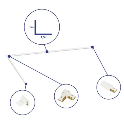 Beschreibung Rail Set 1-Phasen L 1x 1,5 Meter Weiß |incl. Abschlusskappe, Stromanschluss und L -Verbinder